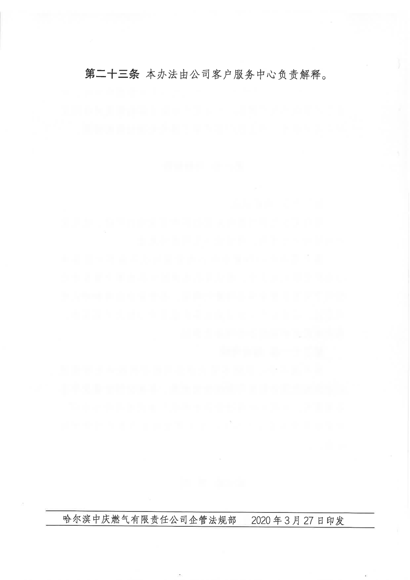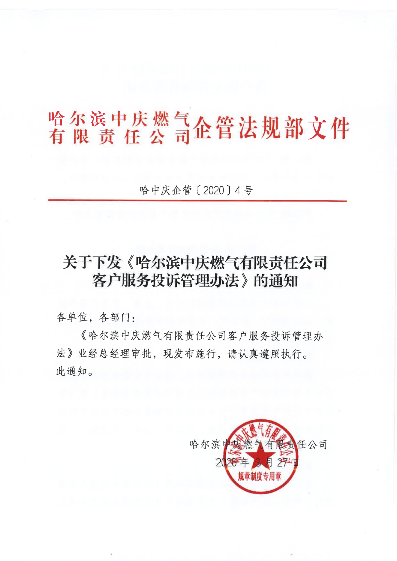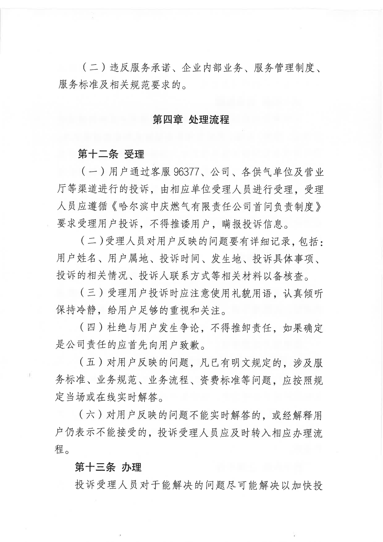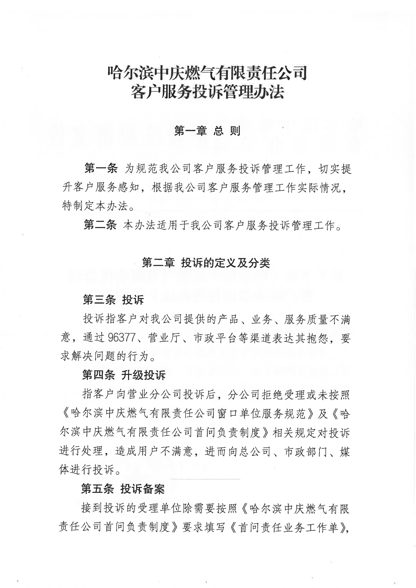 《哈爾濱中慶燃?xì)庥邢挢?zé)任公司客戶服務(wù)投訴管理辦法》