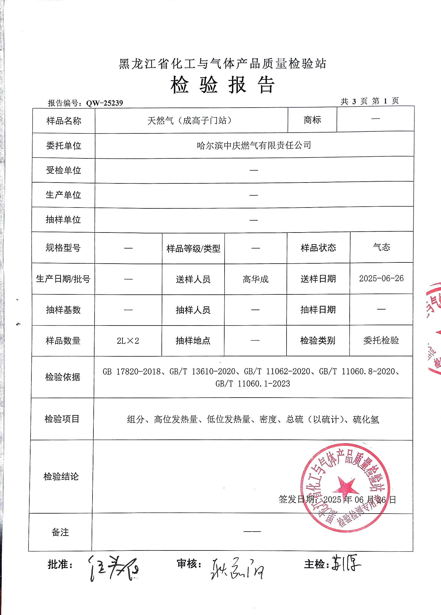 燃?xì)鈾z驗(yàn)報(bào)告2025年6月