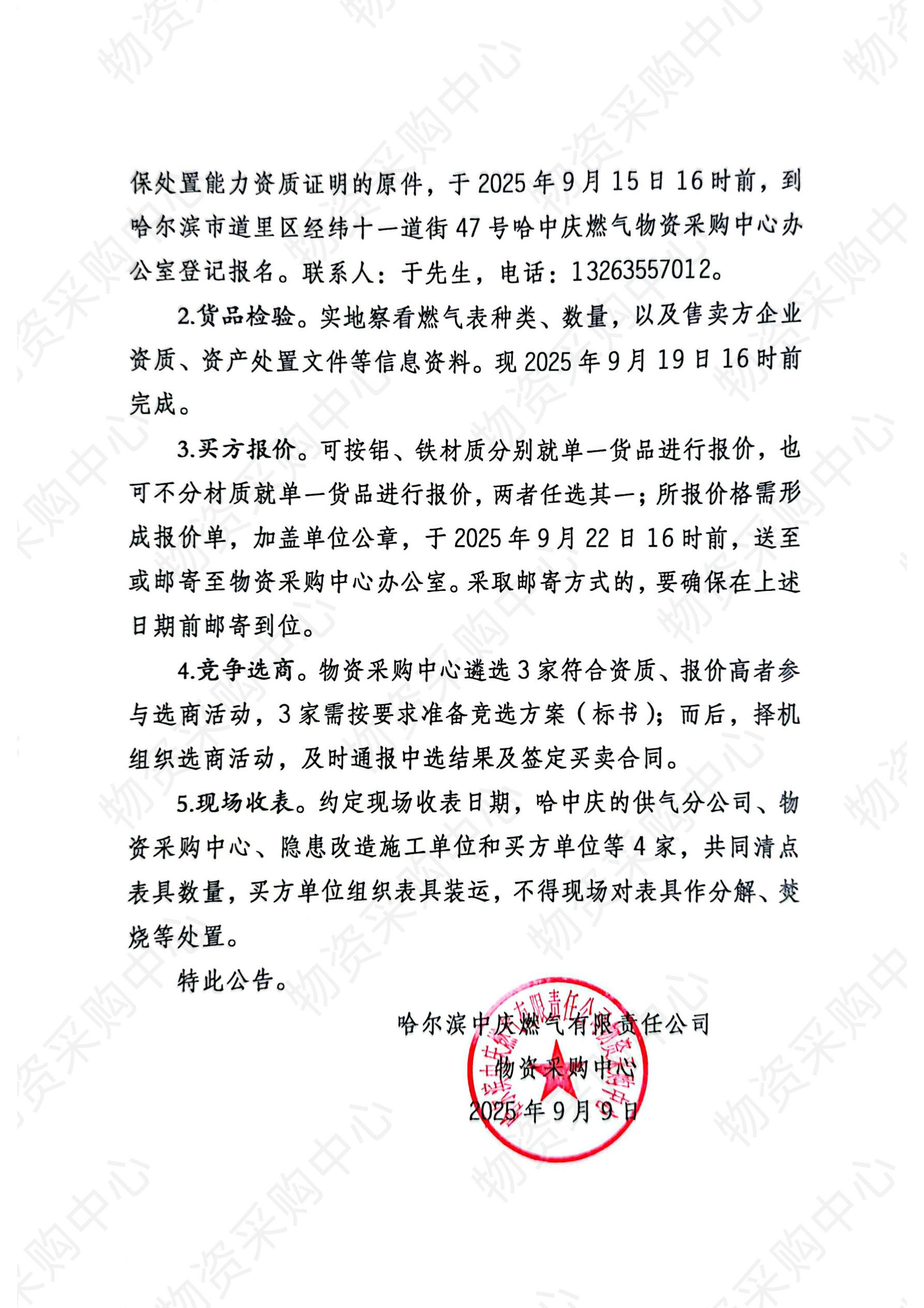 哈爾濱中慶燃?xì)庥邢挢?zé)任公司廢舊燃?xì)獗硖幹霉?